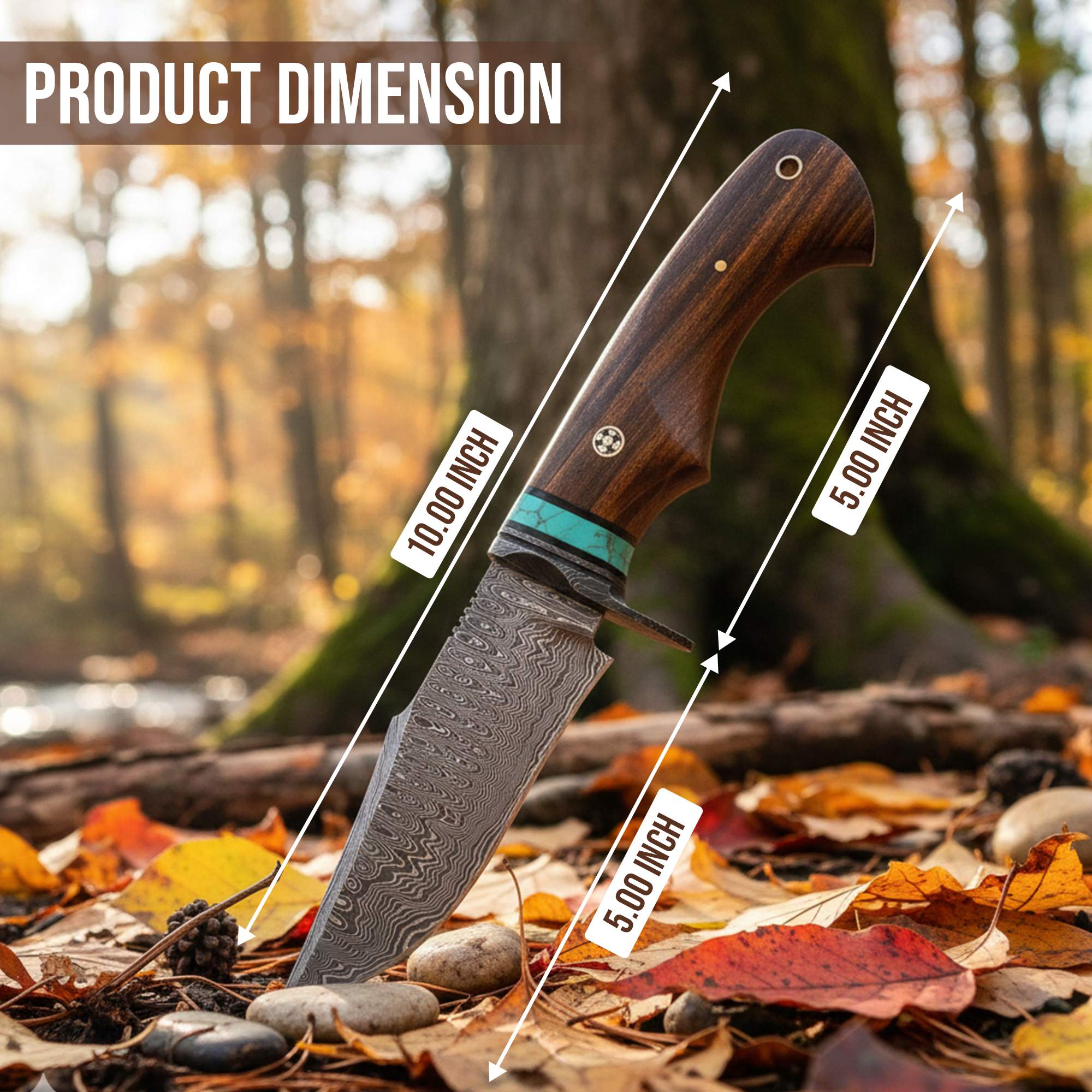 Knife Material: Damascus Steel, Walnut wood